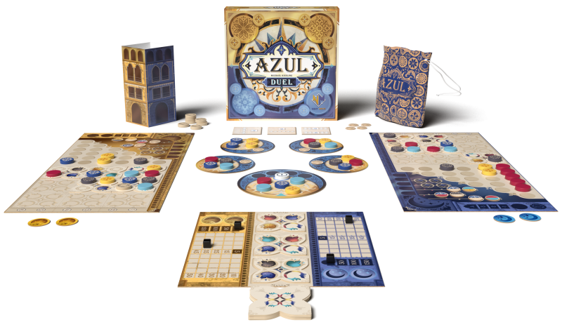 Hra Azul Duel je speciálně navržena pro dva hráče. Přináší nové herní prvky nabízející více taktických možností než původní hra Azul. Vyzdobte klenbu paláce v Sintře destičkami výzdoby a kulatými dlaždicemi. Pokládejte dlaždice ve vámi zvoleném pořadí a vytvářejte nabídky, jež váš soupeř nebude moci odmítnout. Vyzvěte svou rodinu a přátele na souboj o nejlepšího umělce celého Portugalska! Cílem hry je stát se hráčem s nejvyšším počtem bodů na konci 5. kola.